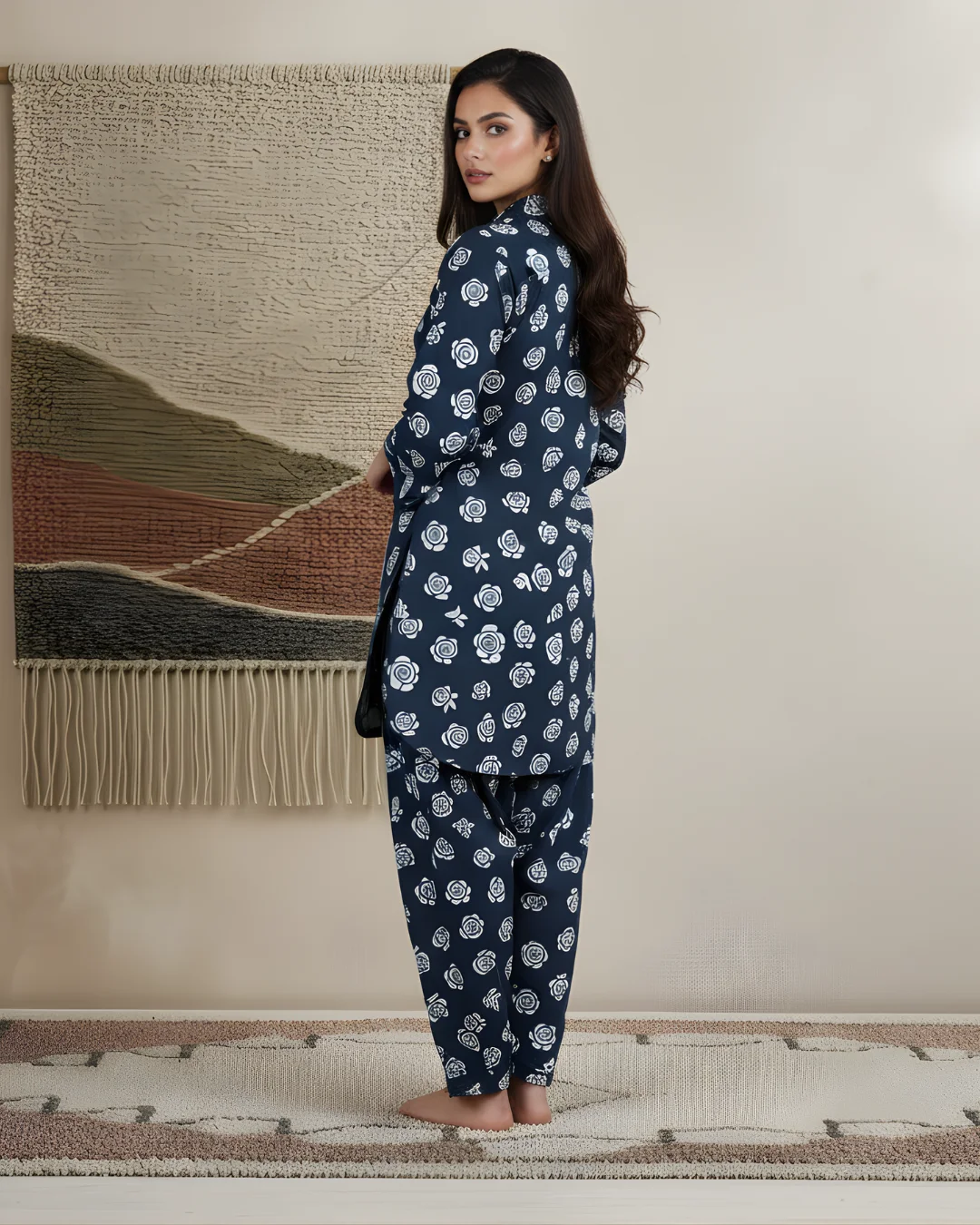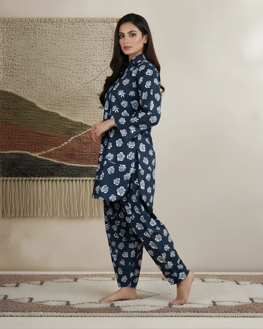 Crafted for effortless elegance, this classic noir printed suit is designed to keep you comfortable