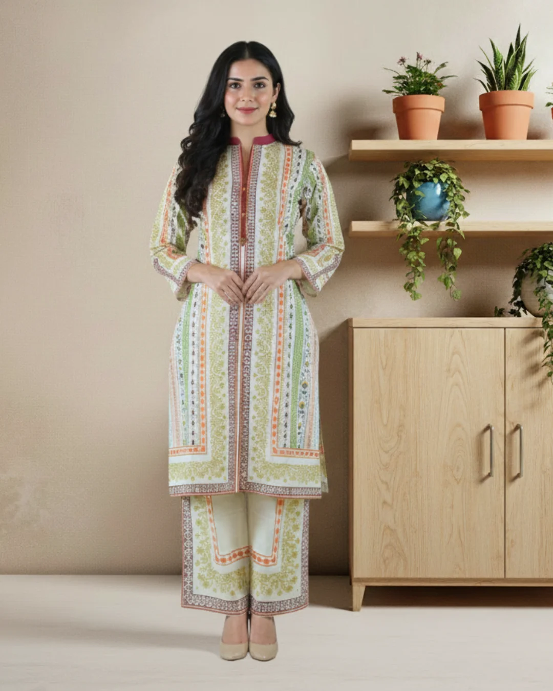 for warm days. Crafted from high-quality, breathable summer printed lawn, it keeps you cool
